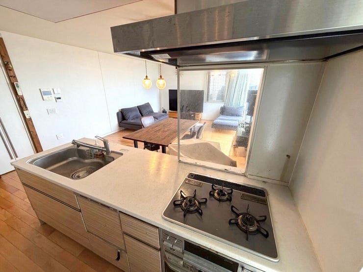 ・圧倒的な開放感: 最上階・3方角住戸。約20.4帖のLDKは天然無垢材のフローリングを使用。